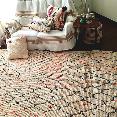 - ラグ・カーペット・マット > ラグ・カーペット > m*m様 ベニワレン モロッコ ラグ クリーム色 赤ドット モロッコ ラグ rug アジラル ベニワレン 幾何学模様 カーペット・絨毯