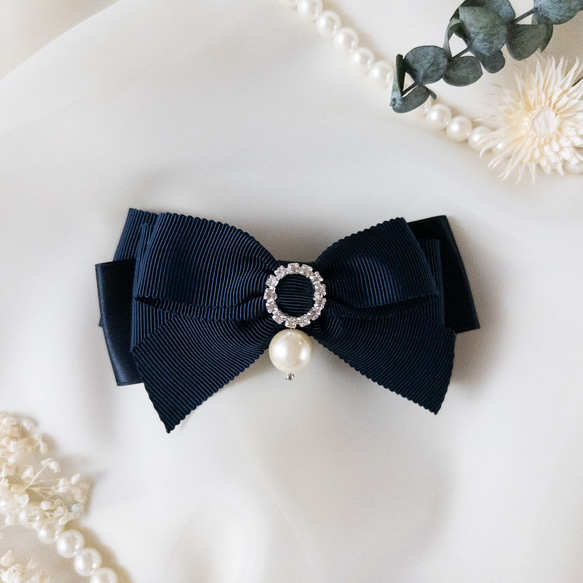 - レディース > ヘアアクセサリー > 【新品未使用・タグ付き】bibiy ビビィ リボンバレッタ ネイビー 在庫限り】ビジューリボンのバレッタ/ネイビー/210-2 バレッタ Irodori