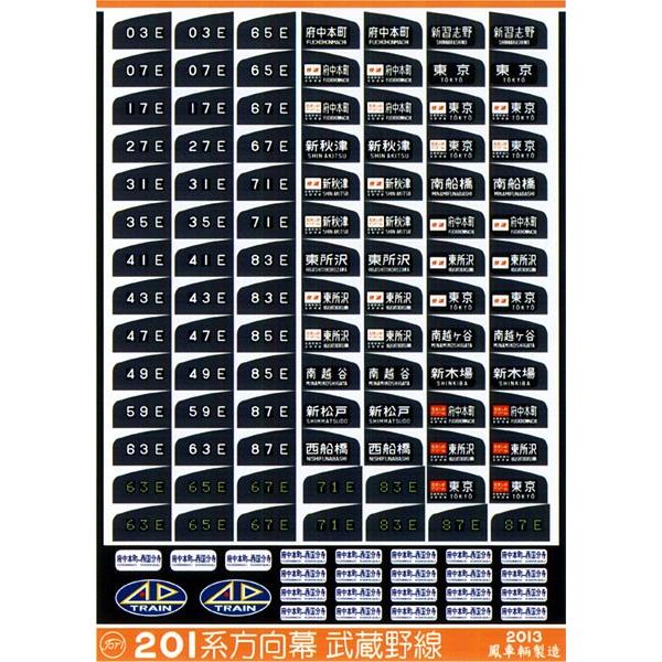 | 商品の特徴 | 鳳車輛製造 235 201系方向幕(武蔵野線) : グリーンマックス・ザ。201系 方向幕 中央線 201系 前面方向幕(豊田電車区/中央線) の展示中。行先側面方向幕シール 201系/中央線 列車種別表示付幕3 未収録列車 [PG。1562 201系前面・側面方向幕 中央特快 | 鉄道模型店 Models IMON。全体的に細かい汚れやシワあり大きな破れ等は無し幕の端に書き込みあり四方津、相模湖、甲府入り | ||