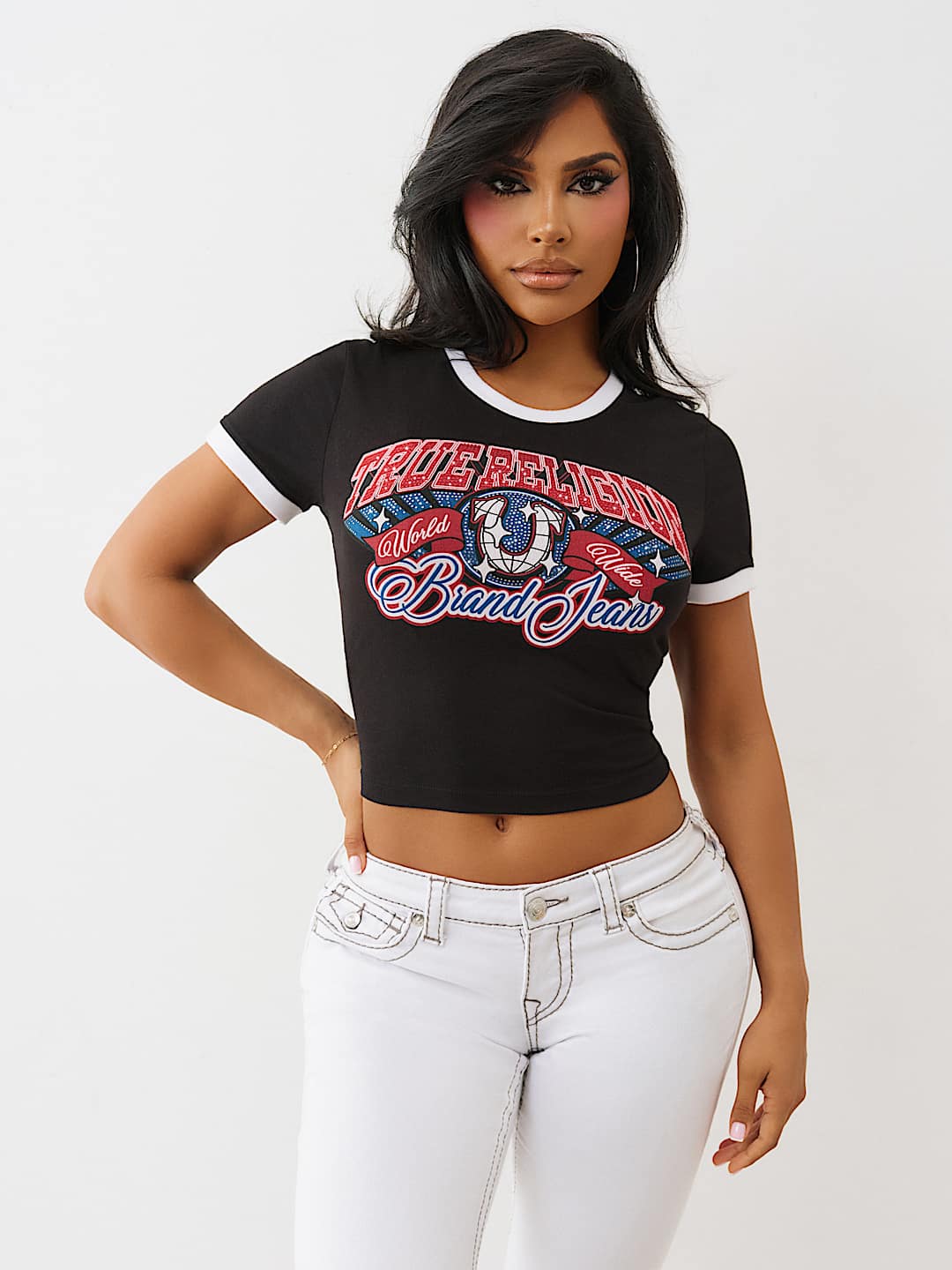 【レア】Girls Don't Cry LOGO RINGER BABY TEE CRYSTAL LOGO RINGER BABY TEE | True Religion