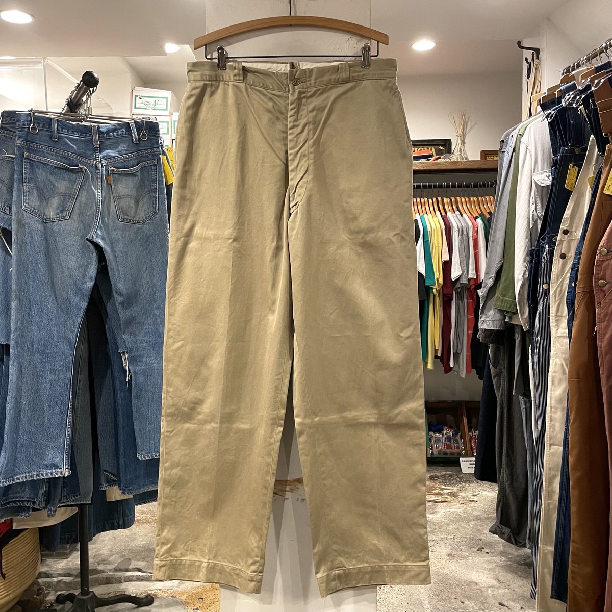 | 商品の特徴 | fit=scale-down,w=1200。古着 60s 米軍 US ARMY ミリタリー SHADE No.1 8.2oz コットン チノ。MILITARY(ミリタリー) 60's 米軍 us army trousers コットンツイル。HOUSTON / ヒューストン 10116 60's ARMY CHINO PANTS / 60年代。★購入前のプロフ必読★60s VINTAGE US ARMY TROUSERS TANヴィンテージ US アーミー チノパン チノパンツトラウザーズ タン MILITALY 尿素ボタンコットンツイル CHNO PANTS US古着 太めW30相当#VINTAGEのPANTS達#米軍の実物達#US古着達人気 U.S.ARMY VINTAGEこだわりの正統派ヴィンテージ良質な本格派 VINTAGE本物にこだわる全ての方におすすめですデッドストックのような倉庫臭さなどなく到着後はすぐに着用頂ける状態かと思いますお探しの方はこの機会に是非ご検討下さいSIZE 表記 -カテゴリーのサイズは目安となりますサイズウエスト幅約38cmワタリ幅約37cm総丈約105cm股下約75cm裾幅約25cm 記載サイズは当方の計測方法によるもので目安程度にご検討下さい計測写真も同様となります計測方法によるクレームには対応出来ませんサイズや着用感などしっかりイメージした上でお買い上げ下さいTROUSERS,MEN'S,COTTON AND POLYESTER TWILL,TAN 1505 TYPE 1,CLASS 2MIL-T-41834TENNESSEE OVERALLDSA-1-4299-64-CRAPID USA ZIP古いもので全体的な状態はよい方だと思いますセンタープレスが多少なりあります一部にシミがありますがきれいめです気になる方にはおすすめ出来ませんこちらの商品は製造からかなりの時間が経過したヴィンテージ品となります一般的な洋服の解釈だと ジャンク品 に該当する商品ですので製造段階での傷や織傷や糸トビはもちろん使用時保管時の傷や汚れ等がある前提でご検討下さいまた年代等につきましてはこちらの知識と経験に基づくものであり他者との相違が発生する場合がございます当方出品中の全ての商品に対して自分で判断出来ない方や不安がある方は買わない選択をして下さいご自身で判断出来るか信用出来る方のみお買い上げ下さい記載のない修理補修裾上げなどがある場合もございますのでご理解ご了承の上お買い上げ下さいネコポス#MM_VINTAGE | ||