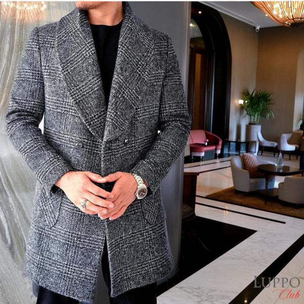 - メンズ > ジャケット・アウター > Pochi0614様ご誓約 ツイード ダブルブレスト チェスターコート 4者混 チェスターコート ハーフコート ツイード コート メンズ チェック
